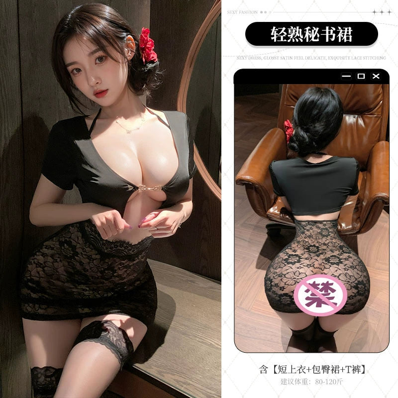 Lace Halter Lingerie Dress – Hollow Out Bodycon Secretary Nightwear Set