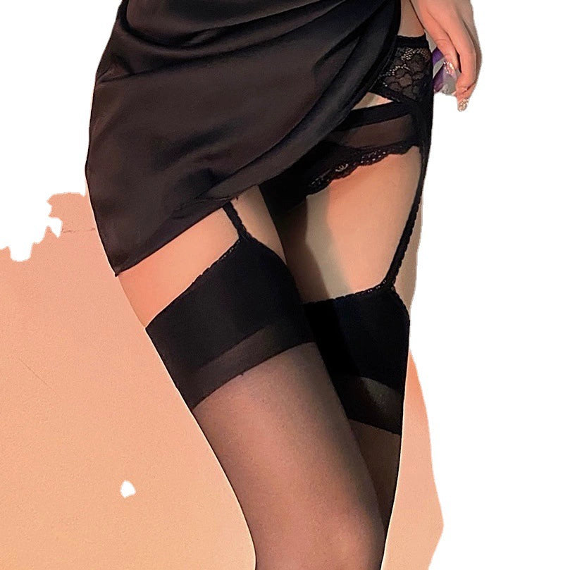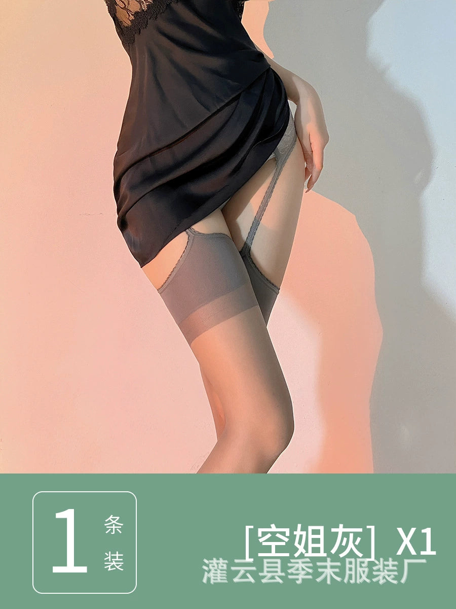 Gray Sheer Bodystocking – One-Piece Suspender Pantyhose with Open Crotch